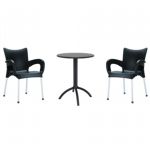 Transform your small outdoor area into a stylish space with Juliette chairs and Octopus 24" round table 3 piece bistro set in black. Made from durable polypropylene resin, this bistro set is perfect for balconies, terraces, decks, patios, cafes and restaurants. Juliette chairs feature a sleek and contemporary design that adds a touch of sophistication to any space. Octopus 24" round table provides plenty of room for two people to sit and enjoy a meal or drink together.