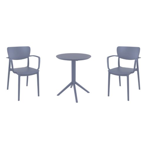 Transform your small outdoor area into a stylish space with Lisa chairs and Sky 24" round folding table 3 piece bistro set in dark gray. Made from durable polypropylene resin, this bistro set is perfect for balconies, terraces, decks, patios, cafes and restaurants. Lisa chairs feature a sleek and contemporary design that adds a touch of sophistication to any space. Sky 24" round folding table provides plenty of room for two people to sit and enjoy a meal or drink together.