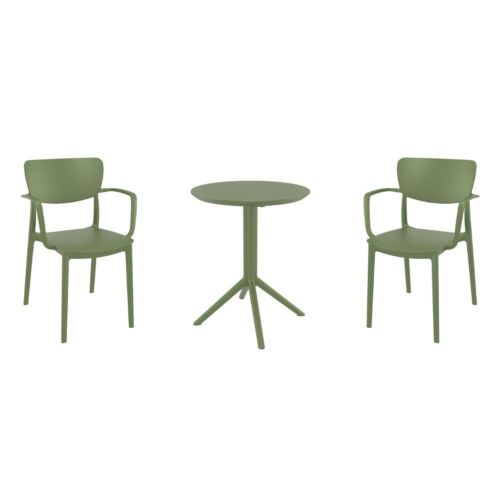 Transform your small outdoor area into a stylish space with Lisa chairs and Sky 24" round folding table 3 piece bistro set in olive green. Made from durable polypropylene resin, this bistro set is perfect for balconies, terraces, decks, patios, cafes and restaurants. Lisa chairs feature a sleek and contemporary design that adds a touch of sophistication to any space. Sky 24" round folding table provides plenty of room for two people to sit and enjoy a meal or drink together.