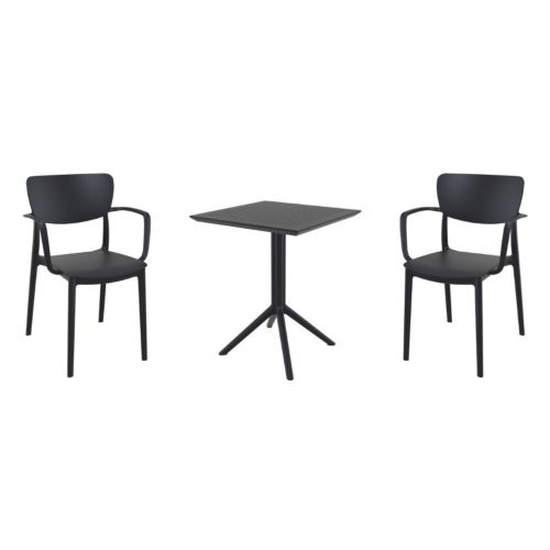 Transform your small outdoor area into a stylish space with Lisa chairs and Sky 24" square folding table 3 piece bistro set in black. Made from durable polypropylene resin, this bistro set is perfect for balconies, terraces, decks, patios, cafes and restaurants. Lisa chairs feature a sleek and contemporary design that adds a touch of sophistication to any space. Sky 24" square folding table provides plenty of room for two people to sit and enjoy a meal or drink together.