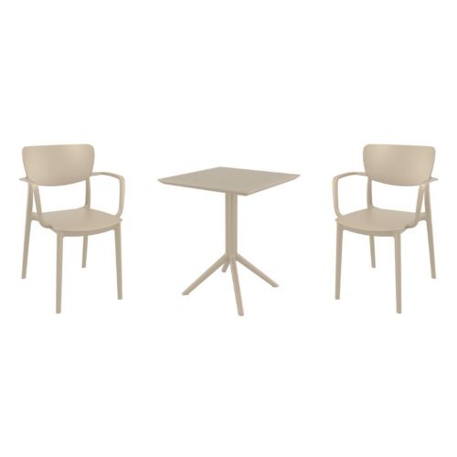 Transform your small outdoor area into a stylish space with Lisa chairs and Sky 24" square folding table 3 piece bistro set in taupe. Made from durable polypropylene resin, this bistro set is perfect for balconies, terraces, decks, patios, cafes and restaurants. Lisa chairs feature a sleek and contemporary design that adds a touch of sophistication to any space. Sky 24" square folding table provides plenty of room for two people to sit and enjoy a meal or drink together.