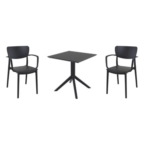 Introducing the Lisa chairs and Sky 27" square table 3 piece dining set in Black - the perfect addition to any small outdoor living area! Crafted from high-quality polypropylene resin, this set is durable and weather-resistant, ensuring it will last you for years to come. Lisa chairs feature a sleek and modern design, with a comfortable seat and backrest. Sky 27" square table providing ample space for two people to enjoy a meal or drink together.