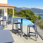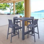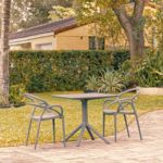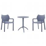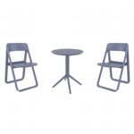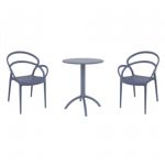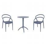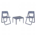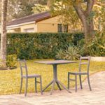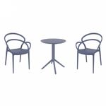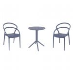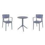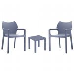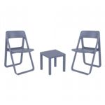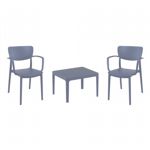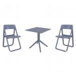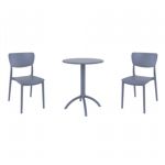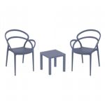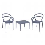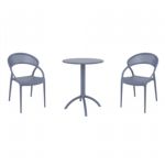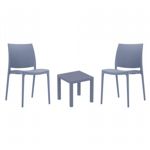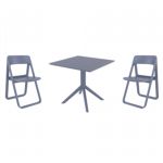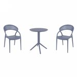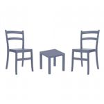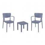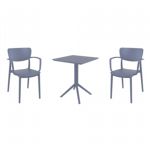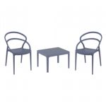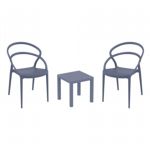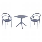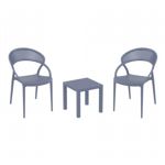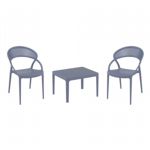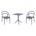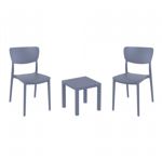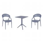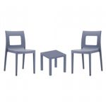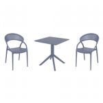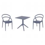 Introducing the Lisa chairs and Sky 27" square table 3 piece dining set in Dark Gray - the perfect addition to any small outdoor living area! Crafted from high-quality polypropylene resin, this set is durable and weather-resistant, ensuring it will last you for years to come. Lisa chairs feature a sleek and modern design, with a comfortable seat and backrest. Sky 27" square table providing ample space for two people to enjoy a meal or drink together.