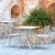 Loft outdoor bistro set with two dining arm chairs and one square table. Contemporary design. Made from commercial grade resin with gas injection molded legs. Extremely durable for outdoor temperatures. Easy cleaning. Perfect for heavy use indoor outdoor areas.