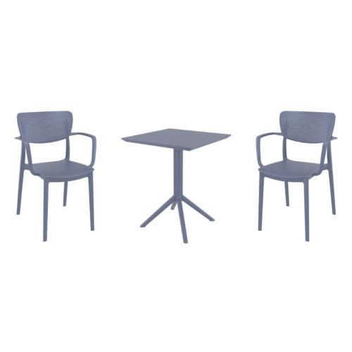 Transform your small outdoor area into a stylish space with Loft arm chairs and Sky 24" square folding table 3 piece bistro set in dark gray. Made from durable polypropylene resin, this bistro set is perfect for balconies, terraces, decks, patios, cafes and restaurants. Loft arm chairs feature a sleek and contemporary design that adds a touch of sophistication to any space. Sky 24" square folding table provides plenty of room for two people to sit and enjoy a meal or drink together.