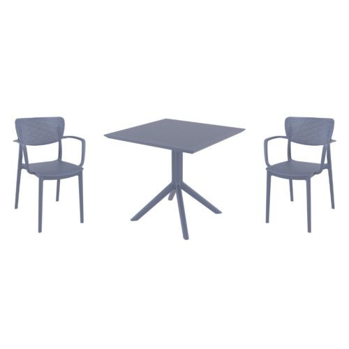Introducing the Loft arm chairs and Sky 31" square table 3 piece dining set in Dark Gray - the perfect addition to any small outdoor living area! Crafted from high-quality polypropylene resin, this set is durable and weather-resistant, ensuring it will last you for years to come. Loft arm chairs feature a sleek and modern design, with a comfortable seat and backrest. Sky 31" square table providing ample space for two people to enjoy a meal or drink together.