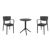 Loft outdoor bistro set with two dining arm chairs and one square table. Contemporary design. Made from commercial grade resin with gas injection molded legs. Extremely durable for outdoor temperatures. Easy cleaning. Perfect for heavy use indoor outdoor areas.