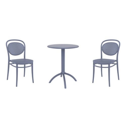 Transform your small outdoor area into a stylish space with Marcel chairs and Octopus 24" round table 3 piece bistro set in dark gray. Made from durable polypropylene resin, this bistro set is perfect for balconies, terraces, decks, patios, cafes and restaurants. Marcel chairs feature a sleek and contemporary design that adds a touch of sophistication to any space. Octopus 24" round table provides plenty of room for two people to sit and enjoy a meal or drink together.