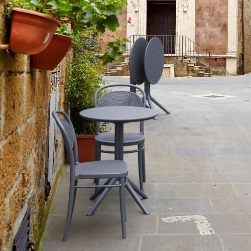 Transform your small outdoor area into a stylish space with Marcel chairs and Sky 24" round folding table 3 piece bistro set in dark gray. Made from durable polypropylene resin, this bistro set is perfect for balconies, terraces, decks, patios, cafes and restaurants. Marcel chairs feature a sleek and contemporary design that adds a touch of sophistication to any space. Sky 24" round folding table provides plenty of room for two people to sit and enjoy a meal or drink together.