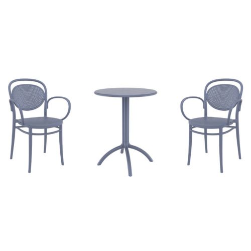 Transform your small outdoor area into a stylish space with Marcel XL arm chairs and Octopus 24" round table 3 piece bistro set in dark gray. Made from durable polypropylene resin, this bistro set is perfect for balconies, terraces, decks, patios, cafes and restaurants. Marcel XL arm chairs feature a sleek and contemporary design that adds a touch of sophistication to any space. Octopus 24" round table provides plenty of room for two people to sit and enjoy a meal or drink together.