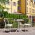 Marie bistro set with chairs and one folding table. Both chairs and table are made of marine grade polypropylene. Great for outdoor spaces, patios and decks. Used by restaurants, cafes and hotels. Chairs are stackable. UV resistant. Easy cleaning. Maintenance Free.