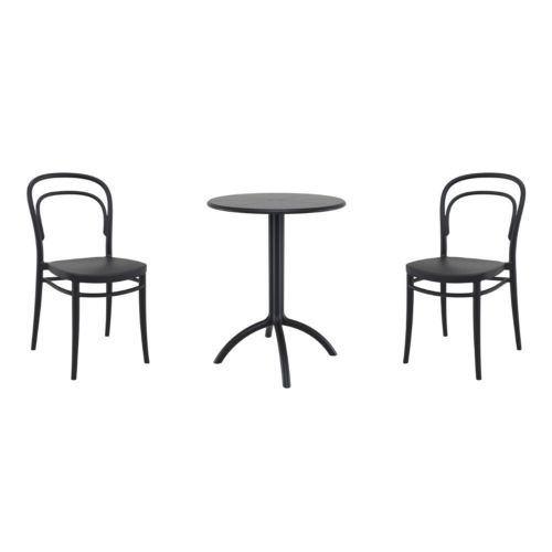 Transform your small outdoor area into a stylish space with Marie chairs and Octopus 24" round table 3 piece bistro set in black. Made from durable polypropylene resin, this bistro set is perfect for balconies, terraces, decks, patios, cafes and restaurants. Marie chairs feature a sleek and contemporary design that adds a touch of sophistication to any space. Octopus 24" round table provides plenty of room for two people to sit and enjoy a meal or drink together.