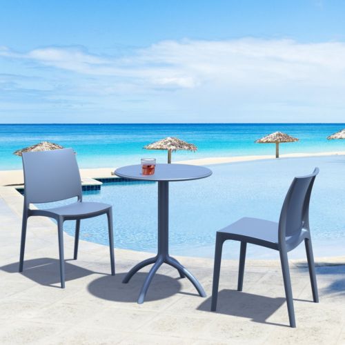 Transform your small outdoor area into a stylish space with Maya chairs and Octopus 24" round table 3 piece bistro set in dark gray. Made from durable polypropylene resin, this bistro set is perfect for balconies, terraces, decks, patios, cafes and restaurants. Maya chairs feature a sleek and contemporary design that adds a touch of sophistication to any space. Octopus 24" round table provides plenty of room for two people to sit and enjoy a meal or drink together.