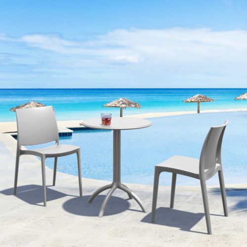 Siesta LogoTransform your small outdoor area into a stylish space with Maya chairs and Octopus 24" round table 3 piece bistro set in silver gray. Made from durable polypropylene resin, this bistro set is perfect for balconies, terraces, decks, patios, cafes and restaurants. Maya chairs feature a sleek and contemporary design that adds a touch of sophistication to any space. Octopus 24" round table provides plenty of room for two people to sit and enjoy a meal or drink together.