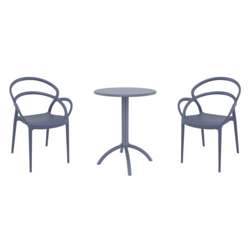 Transform your small outdoor area into a stylish space with Mila arm chairs and Octopus 24" round table 3 piece bistro set in dark gray. Made from durable polypropylene resin, this bistro set is perfect for balconies, terraces, decks, patios, cafes and restaurants. Mila arm chairs feature a sleek and contemporary design that adds a touch of sophistication to any space. Octopus 24" round table provides plenty of room for two people to sit and enjoy a meal or drink together.