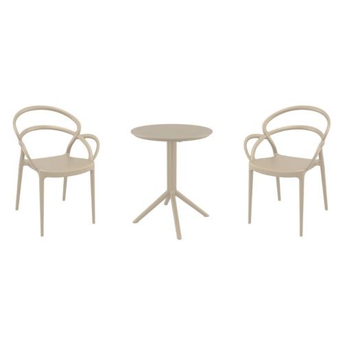 Transform your small outdoor area into a stylish space with Mila arm chairs and Sky 24" round folding table 3 piece bistro set in taupe. Made from durable polypropylene resin, this bistro set is perfect for balconies, terraces, decks, patios, cafes and restaurants. Mila arm chairs feature a sleek and contemporary design that adds a touch of sophistication to any space. Sky 24" round folding table provides plenty of room for two people to sit and enjoy a meal or drink together.