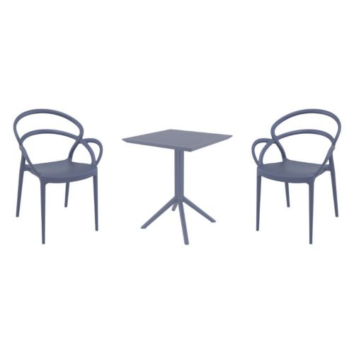 Transform your small outdoor area into a stylish space with Mila arm chairs and Sky 24" square folding table 3 piece bistro set in dark gray. Made from durable polypropylene resin, this bistro set is perfect for balconies, terraces, decks, patios, cafes and restaurants. Mila arm chairs feature a sleek and contemporary design that adds a touch of sophistication to any space. Sky 24" square folding table provides plenty of room for two people to sit and enjoy a meal or drink together.