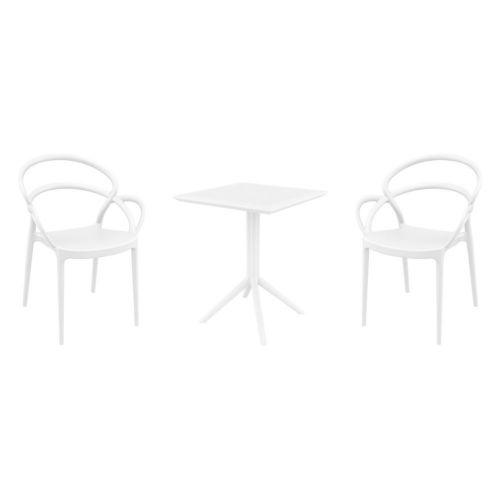 Transform your small outdoor area into a stylish space with Mila arm chairs and Sky 24" square folding table 3 piece bistro set in white. Made from durable polypropylene resin, this bistro set is perfect for balconies, terraces, decks, patios, cafes and restaurants. Mila arm chairs feature a sleek and contemporary design that adds a touch of sophistication to any space. Sky 24" square folding table provides plenty of room for two people to sit and enjoy a meal or drink together.