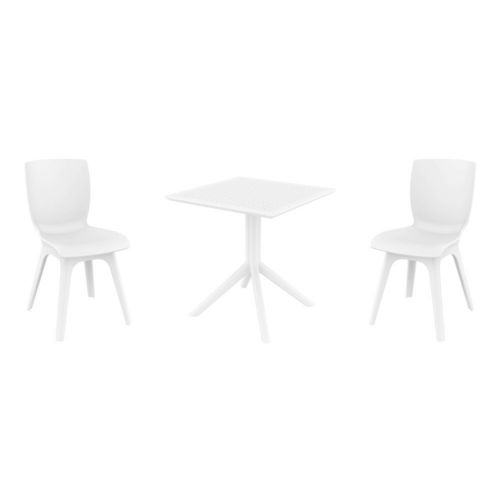 Introducing the Mio PP chairs and Sky 27" square table 3 piece dining set in White - the perfect addition to any small outdoor living area! Crafted from high-quality polypropylene resin, this set is durable and weather-resistant, ensuring it will last you for years to come. Mio PP chairs feature a sleek and modern design, with a comfortable seat and backrest. Sky 27" square table providing ample space for two people to enjoy a meal or drink together.