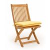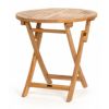Modern teak bistro set with 2 folding chairs and a folding table with 30 inch diameter. Made with kiln-dried, grade a teak wood. Chairs and table folds for easy storage. Modern and simple design. Teak wood is natural and suitable for outdoors. Requires regular teak wood maintenance. Chairs and table come assembled. Cushions are made of Sunbrella fabric. Cushions available in multiple colors. Seat cushions are 2 inch thick. Price includes seat cushions.