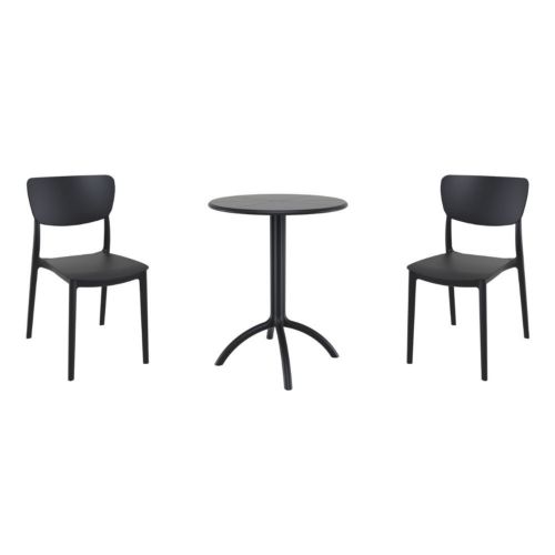 Transform your small outdoor area into a stylish space with Monna chairs and Octopus 24" round table 3 piece bistro set in black. Made from durable polypropylene resin, this bistro set is perfect for balconies, terraces, decks, patios, cafes and restaurants. Monna chairs feature a sleek and contemporary design that adds a touch of sophistication to any space. Octopus 24" round table provides plenty of room for two people to sit and enjoy a meal or drink together.