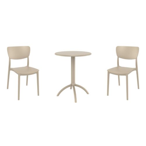 Transform your small outdoor area into a stylish space with Monna chairs and Octopus 24" round table 3 piece bistro set in taupe. Made from durable polypropylene resin, this bistro set is perfect for balconies, terraces, decks, patios, cafes and restaurants. Monna chairs feature a sleek and contemporary design that adds a touch of sophistication to any space. Octopus 24" round table provides plenty of room for two people to sit and enjoy a meal or drink together.