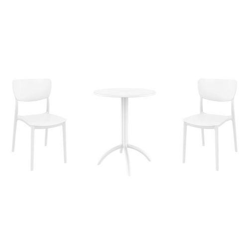 Transform your small outdoor area into a stylish space with Monna chairs and Octopus 24" round table 3 piece bistro set in white. Made from durable polypropylene resin, this bistro set is perfect for balconies, terraces, decks, patios, cafes and restaurants. Monna chairs feature a sleek and contemporary design that adds a touch of sophistication to any space. Octopus 24" round table provides plenty of room for two people to sit and enjoy a meal or drink together.