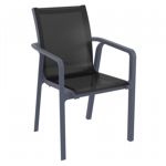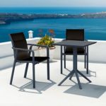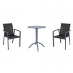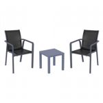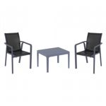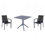 Introducing the Pacific sling arm chairs and Sky 27" square table 3 piece dining set in Dark Gray and Black - the perfect addition to any small outdoor living area! Crafted from high-quality polypropylene resin, this set is durable and weather-resistant, ensuring it will last you for years to come. Pacific sling arm chairs feature a sleek and modern design, with a comfortable seat and backrest. Sky 27" square table providing ample space for two people to enjoy a meal or drink together.