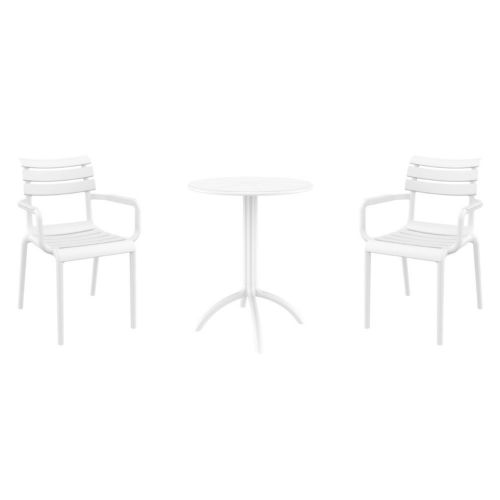 Transform your small outdoor area into a stylish space with Paris arm chairs and Octopus 24" round table 3 piece bistro set in white. Made from durable polypropylene resin, this bistro set is perfect for balconies, terraces, decks, patios, cafes and restaurants. Paris arm chairs feature a sleek and contemporary design that adds a touch of sophistication to any space. Octopus 24" round table provides plenty of room for two people to sit and enjoy a meal or drink together.