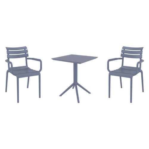 Transform your small outdoor area into a stylish space with Paris arm chairs and Sky 24" square folding table 3 piece bistro set in dark gray. Made from durable polypropylene resin, this bistro set is perfect for balconies, terraces, decks, patios, cafes and restaurants. Paris arm chairs feature a sleek and contemporary design that adds a touch of sophistication to any space. Sky 24" square folding table provides plenty of room for two people to sit and enjoy a meal or drink together.