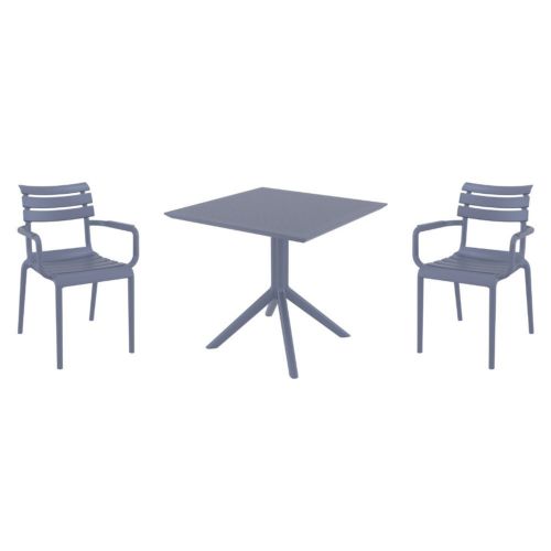 Introducing the Paris arm chairs and Sky 31" square table 3 piece dining set in Dark Gray - the perfect addition to any small outdoor living area! Crafted from high-quality polypropylene resin, this set is durable and weather-resistant, ensuring it will last you for years to come. Paris arm chairs feature a sleek and modern design, with a comfortable seat and backrest. Sky 31" square table providing ample space for two people to enjoy a meal or drink together.