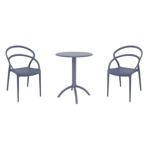 Transform your small outdoor area into a stylish space with Pia chairs and Octopus 24" round table 3 piece bistro set in dark gray. Made from durable polypropylene resin, this bistro set is perfect for balconies, terraces, decks, patios, cafes and restaurants. Pia chairs feature a sleek and contemporary design that adds a touch of sophistication to any space. Octopus 24" round table provides plenty of room for two people to sit and enjoy a meal or drink together.