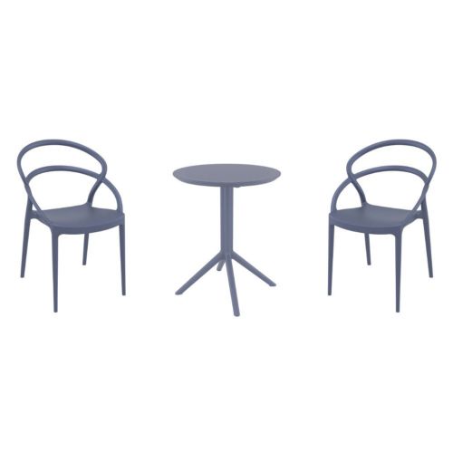 Transform your small outdoor area into a stylish space with Pia chairs and Sky 24" round folding table 3 piece bistro set in dark gray. Made from durable polypropylene resin, this bistro set is perfect for balconies, terraces, decks, patios, cafes and restaurants. Pia chairs feature a sleek and contemporary design that adds a touch of sophistication to any space. Sky 24" round folding table provides plenty of room for two people to sit and enjoy a meal or drink together.