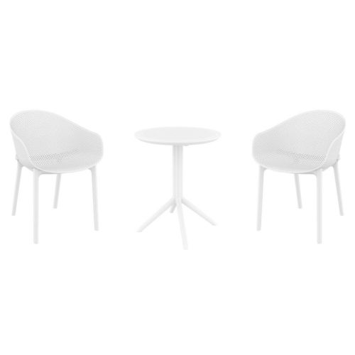 Transform your small outdoor area into a stylish space with Sky arm chairs and Sky 24" round folding table 3 piece bistro set in white. Made from durable polypropylene resin, this bistro set is perfect for balconies, terraces, decks, patios, cafes and restaurants. Sky arm chairs feature a sleek and contemporary design that adds a touch of sophistication to any space. Sky 24" round folding table provides plenty of room for two people to sit and enjoy a meal or drink together.