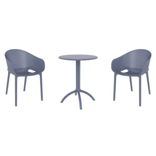 Transform your small outdoor area into a stylish space with Sky Pro arm chairs and Octopus 24" round table 3 piece bistro set in dark gray. Made from durable polypropylene resin, this bistro set is perfect for balconies, terraces, decks, patios, cafes and restaurants. Sky Pro arm chairs feature a sleek and contemporary design that adds a touch of sophistication to any space. Octopus 24" round table provides plenty of room for two people to sit and enjoy a meal or drink together.