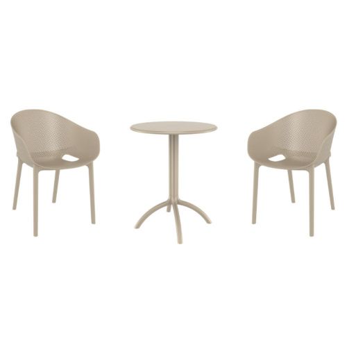 Transform your small outdoor area into a stylish space with Sky Pro arm chairs and Octopus 24" round table 3 piece bistro set in taupe. Made from durable polypropylene resin, this bistro set is perfect for balconies, terraces, decks, patios, cafes and restaurants. Sky Pro arm chairs feature a sleek and contemporary design that adds a touch of sophistication to any space. Octopus 24" round table provides plenty of room for two people to sit and enjoy a meal or drink together.