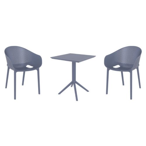 Transform your small outdoor area into a stylish space with Sky Pro arm chairs and Sky 24" square folding table 3 piece bistro set in dark gray. Made from durable polypropylene resin, this bistro set is perfect for balconies, terraces, decks, patios, cafes and restaurants. Sky Pro arm chairs feature a sleek and contemporary design that adds a touch of sophistication to any space. Sky 24" square folding table provides plenty of room for two people to sit and enjoy a meal or drink together.