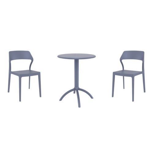 Transform your small outdoor area into a stylish space with Snow chairs and Octopus 24" round table 3 piece bistro set in dark gray. Made from durable polypropylene resin, this bistro set is perfect for balconies, terraces, decks, patios, cafes and restaurants. Snow chairs feature a sleek and contemporary design that adds a touch of sophistication to any space. Octopus 24" round table provides plenty of room for two people to sit and enjoy a meal or drink together.
