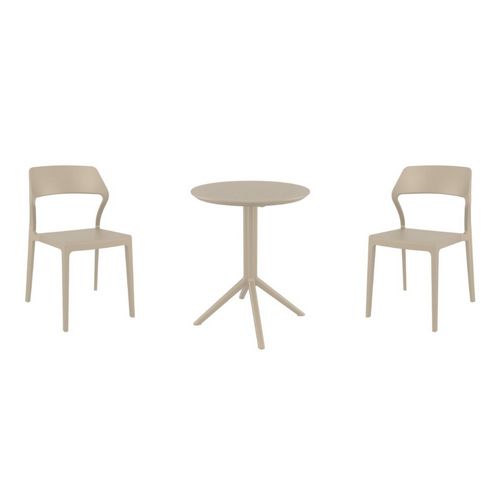 Transform your small outdoor area into a stylish space with Snow chairs and Sky 24" round folding table 3 piece bistro set in taupe. Made from durable polypropylene resin, this bistro set is perfect for balconies, terraces, decks, patios, cafes and restaurants. Snow chairs feature a sleek and contemporary design that adds a touch of sophistication to any space. Sky 24" round folding table provides plenty of room for two people to sit and enjoy a meal or drink together.