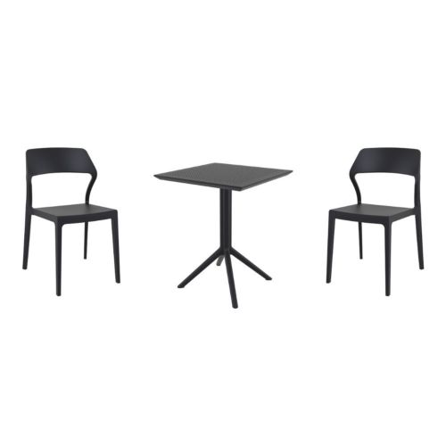 Transform your small outdoor area into a stylish space with Snow chairs and Sky 24" square folding table 3 piece bistro set in black. Made from durable polypropylene resin, this bistro set is perfect for balconies, terraces, decks, patios, cafes and restaurants. Snow chairs feature a sleek and contemporary design that adds a touch of sophistication to any space. Sky 24" square folding table provides plenty of room for two people to sit and enjoy a meal or drink together.