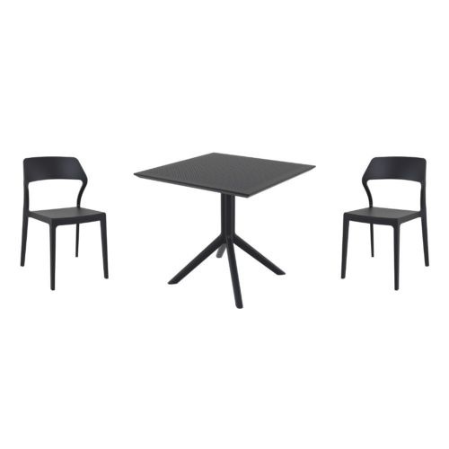 Introducing the Snow chairs and Sky 31" square table 3 piece dining set in Black - the perfect addition to any small outdoor living area! Crafted from high-quality polypropylene resin, this set is durable and weather-resistant, ensuring it will last you for years to come. Snow chairs feature a sleek and modern design, with a comfortable seat and backrest. Sky 31" square table providing ample space for two people to enjoy a meal or drink together.