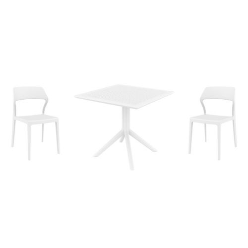 Introducing the Snow chairs and Sky 31" square table 3 piece dining set in White - the perfect addition to any small outdoor living area! Crafted from high-quality polypropylene resin, this set is durable and weather-resistant, ensuring it will last you for years to come. Snow chairs feature a sleek and modern design, with a comfortable seat and backrest. Sky 31" square table providing ample space for two people to enjoy a meal or drink together.
