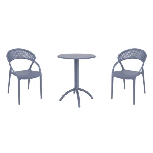 Transform your small outdoor area into a stylish space with Sunset chairs and Octopus 24" round table 3 piece bistro set in dark gray. Made from durable polypropylene resin, this bistro set is perfect for balconies, terraces, decks, patios, cafes and restaurants. Sunset chairs feature a sleek and contemporary design that adds a touch of sophistication to any space. Octopus 24" round table provides plenty of room for two people to sit and enjoy a meal or drink together.