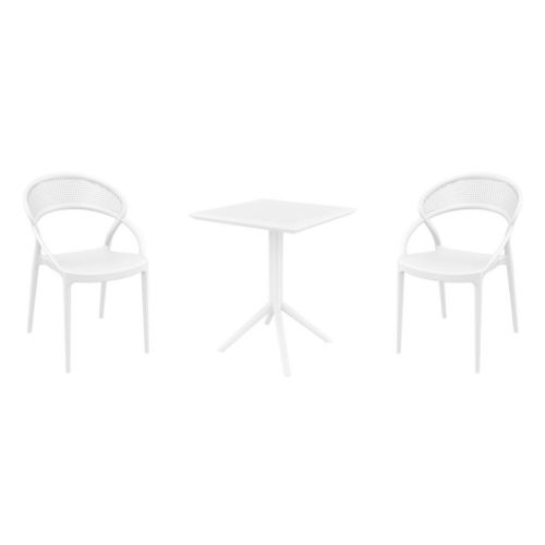 Transform your small outdoor area into a stylish space with Sunset chairs and Sky 24" square folding table 3 piece bistro set in white. Made from durable polypropylene resin, this bistro set is perfect for balconies, terraces, decks, patios, cafes and restaurants. Sunset chairs feature a sleek and contemporary design that adds a touch of sophistication to any space. Sky 24" square folding table provides plenty of room for two people to sit and enjoy a meal or drink together.
