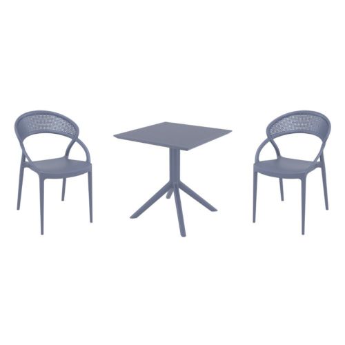 Introducing the Sunset chairs and Sky 27" square table 3 piece dining set in Dark Gray - the perfect addition to any small outdoor living area! Crafted from high-quality polypropylene resin, this set is durable and weather-resistant, ensuring it will last you for years to come. Sunset chairs feature a sleek and modern design, with a comfortable seat and backrest. Sky 27" square table providing ample space for two people to enjoy a meal or drink together.