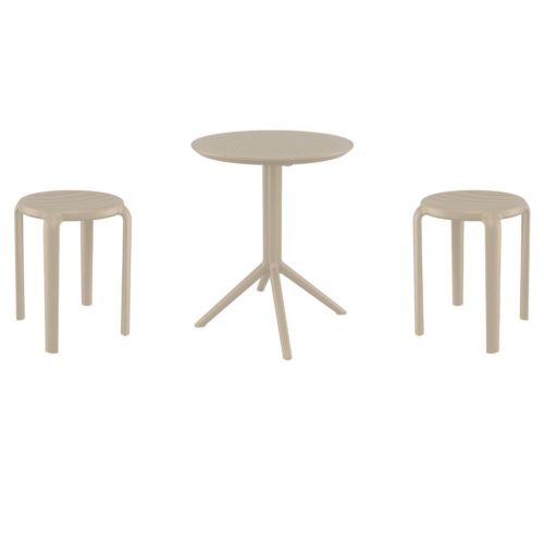 Transform your small outdoor area into a stylish space with Tom chairs and Sky 24" round folding table 3 piece bistro set in taupe. Made from durable polypropylene resin, this bistro set is perfect for balconies, terraces, decks, patios, cafes and restaurants. Tom chairs feature a sleek and contemporary design that adds a touch of sophistication to any space. Sky 24" round folding table provides plenty of room for two people to sit and enjoy a meal or drink together.