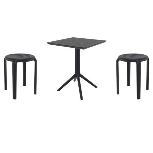 Transform your small outdoor area into a stylish space with Tom chairs and Sky 24" square folding table 3 piece bistro set in black. Made from durable polypropylene resin, this bistro set is perfect for balconies, terraces, decks, patios, cafes and restaurants. Tom chairs feature a sleek and contemporary design that adds a touch of sophistication to any space. Sky 24" square folding table provides plenty of room for two people to sit and enjoy a meal or drink together.