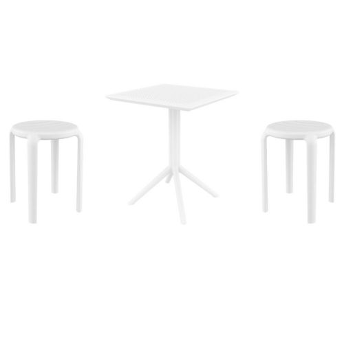 Transform your small outdoor area into a stylish space with Tom chairs and Sky 24" square folding table 3 piece bistro set in white. Made from durable polypropylene resin, this bistro set is perfect for balconies, terraces, decks, patios, cafes and restaurants. Tom chairs feature a sleek and contemporary design that adds a touch of sophistication to any space. Sky 24" square folding table provides plenty of room for two people to sit and enjoy a meal or drink together.