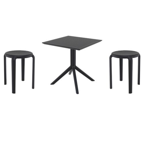 Introducing the Tom chairs and Sky 27" square table 3 piece dining set in Black - the perfect addition to any small outdoor living area! Crafted from high-quality polypropylene resin, this set is durable and weather-resistant, ensuring it will last you for years to come. Tom chairs feature a sleek and modern design, with a comfortable seat and backrest. Sky 27" square table providing ample space for two people to enjoy a meal or drink together.