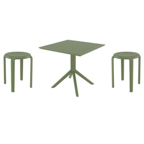 Introducing the Tom chairs and Sky 31" square table 3 piece dining set in Olive Green - the perfect addition to any small outdoor living area! Crafted from high-quality polypropylene resin, this set is durable and weather-resistant, ensuring it will last you for years to come. Tom chairs feature a sleek and modern design, with a comfortable seat and backrest. Sky 31" square table providing ample space for two people to enjoy a meal or drink together.